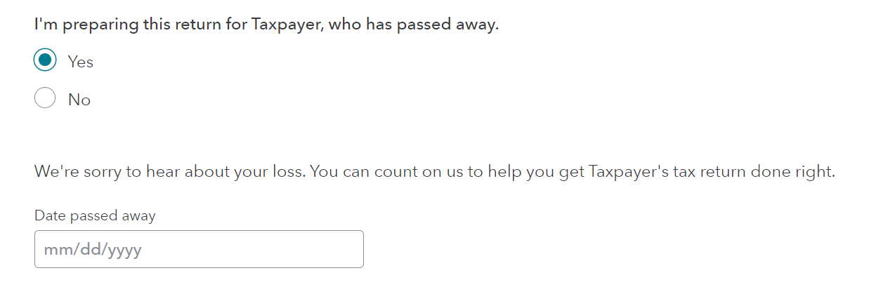 The Spouse (second) Taxpayer question is: (Yes if your husband's name is first)