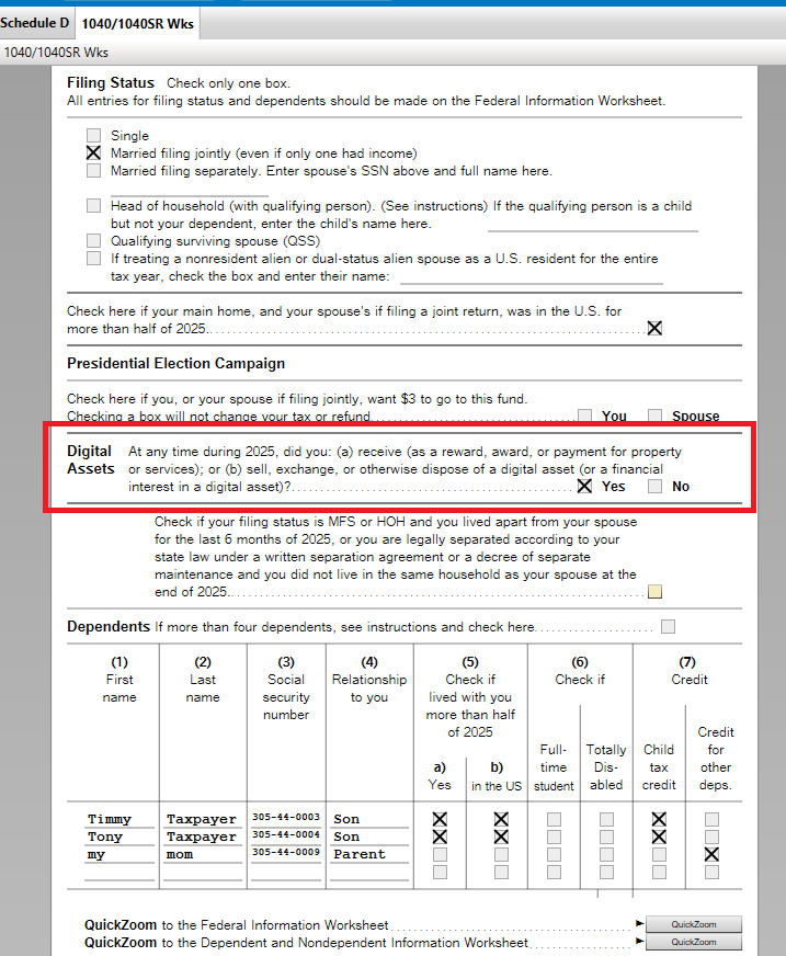 My problem is that when I initially went through the tax preparation process (online turbo tax) I was asked if I had/sold digital currency in 2024. I answered no. I then learned my wife did have/sell some (very small amount, for $8 gain). I uploaded the .csv file from coinbase. That all went well but I was not asked the question about whether I owned bitcoin again. When I went to review my 1040 on filing, it still showed me answering "no" to the question of if I had bitcoin.
