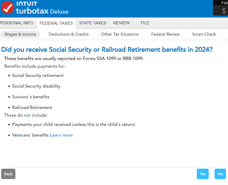 In TurboTax Desktop Deluxe in Windows 11, I am able to open the Social Security SSA-1099 screen.