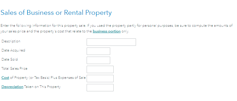 5) Select Sales of Business or Rental Property that you haven't already reported