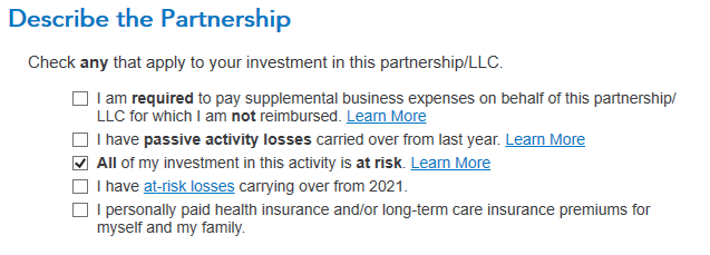 you need a version of Turbotac that supports input of the K-1 information. the basic online does not have this