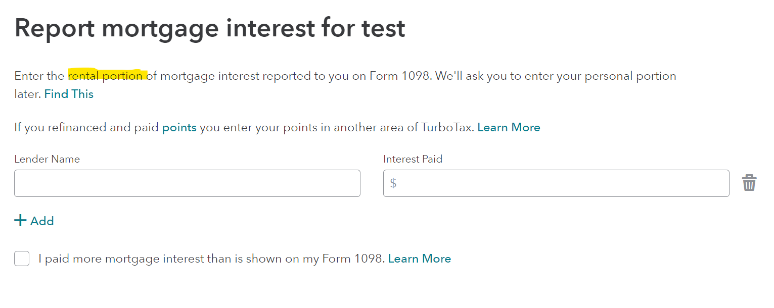 For mortgage interests in the rental expenses section: should I enter the entire amount of mortgage interests of the entire year and does TT automatically calculate the corresponding amount for the rental period? Or should I manually enter only the corresponding amount of interests for the rental period?
