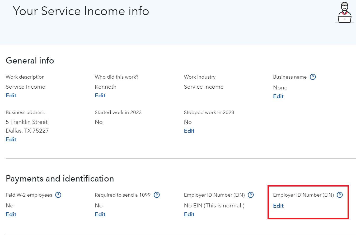 • Search (upper right magnifier) > Type Schedule C > Use the Jump to... link > Edit beside your business > Scroll to 'Business Summary' > Select 'Your Service Info'