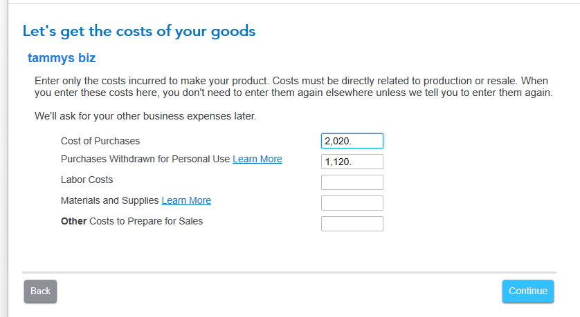 You're then asked for the value of your inventory at the beginning of 2025, and at the end of 2025, and on the next screen enter the amount of 2025 purchases, and value of unsalable inventory as 'Withdrawn for Personal Use'.