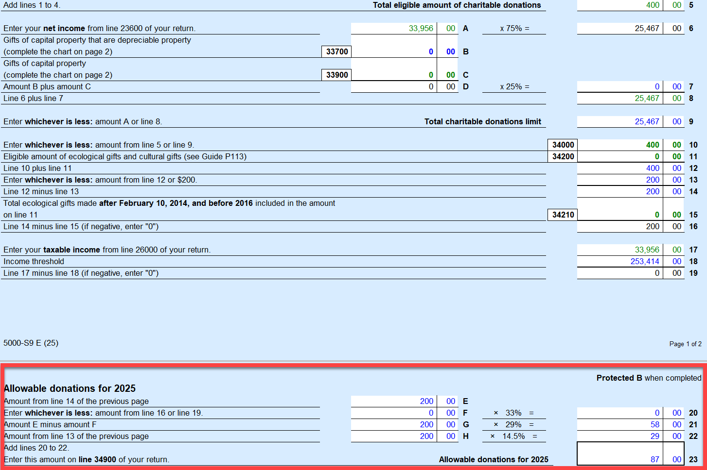 @lmiceli Line 34900 shows you the Allowable donation for the year, which may not be the full amount of donations that you entered.