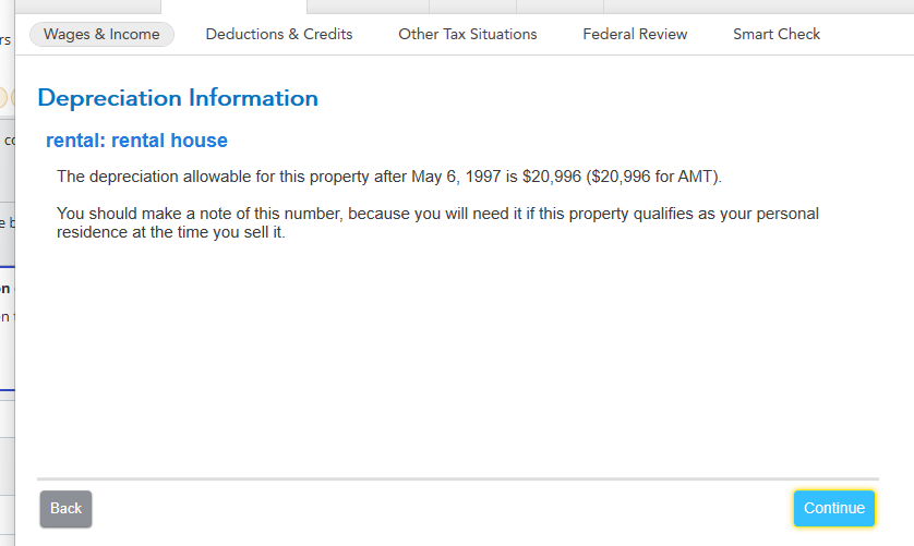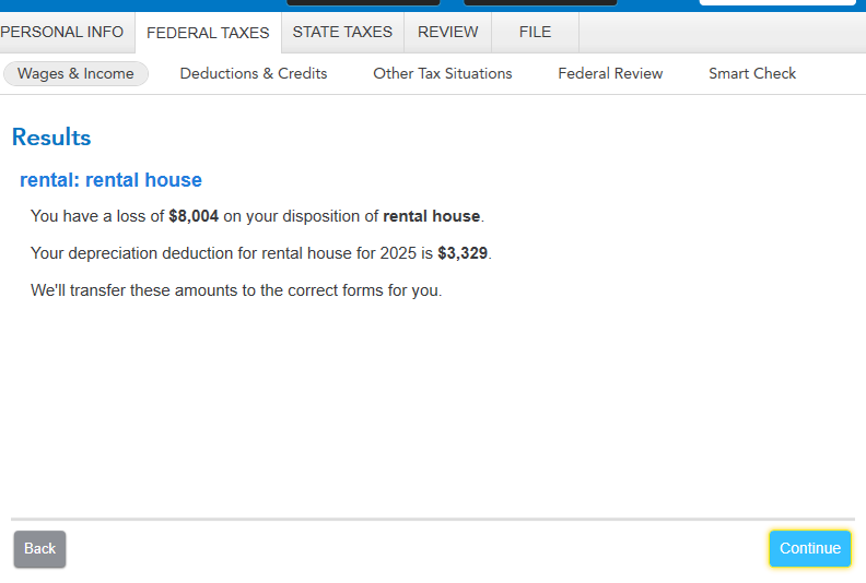 Turbo Tax computes a full year of depreciation, even though I entered the number of days that I owned the rental and indicated that the rental property was sold during the year.