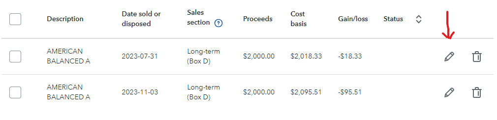If so, are you able to edit the transaction by clicking the pencil to the right? Are you able to edit the transaction and report the correct gain/loss?
