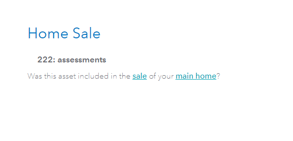 After a few more screens, you will encounter, "Home Sale", "Was this asset included in the sale of your main home"