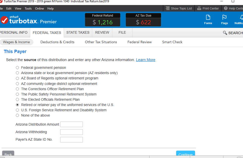 When you enter your 1099-R in your Federal return, make sure you indicate 'retired or retainer pay of the uniformed services of the US' after your entry (screenshot).
