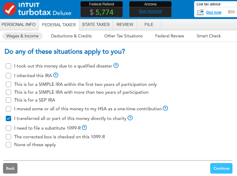 If you don't see these screens, you could step through your 1099-R entries again to check your entries, or delete/re-enter the form. If you're using TurboTax Online, clear your Cache and Cookies first. Here's How to Delete Forms in TurboTax Online.