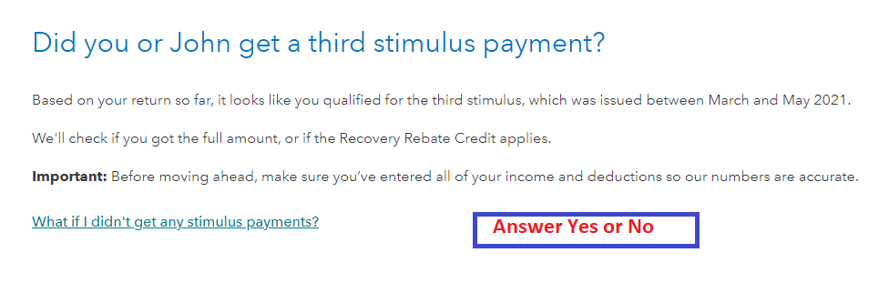 When you are logged into your TurboTax account use the following steps to enter your third stimulus payment or enter zero if you didn't receive it yet.