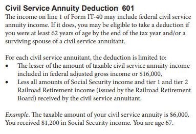 If you receive a civil service annuity both for yourself and as a surviving spouse, the combined deduction cannot exceed $16,000.