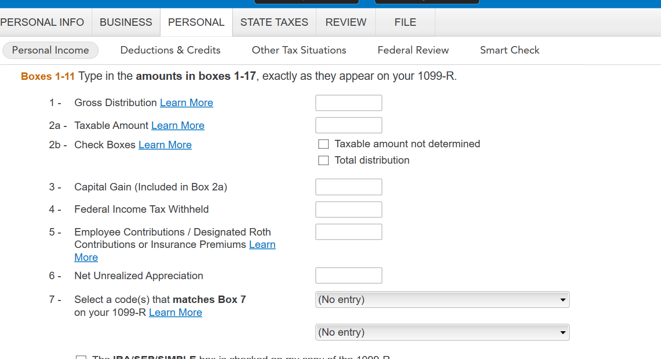 To enter your retirement income, Go to Federal> Wages and Income>Retirement Plans and Social Security>IRA 401 k) Pension Plan Withdrawals to enter your 1099R.