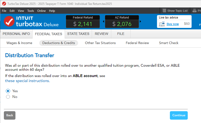 I cannot tell you how disappointed I am with your software and support with regards to the 529k to Roth IRA conversion being treated as a taxable item when it is simply not per the Secure Act 2.0 section 126. You have had over a year now to fix Turbo Tax and you have failed to do so now for two tax filing seasons in a row. At this point, you can most likely count me out for using Turbo Tax next year.