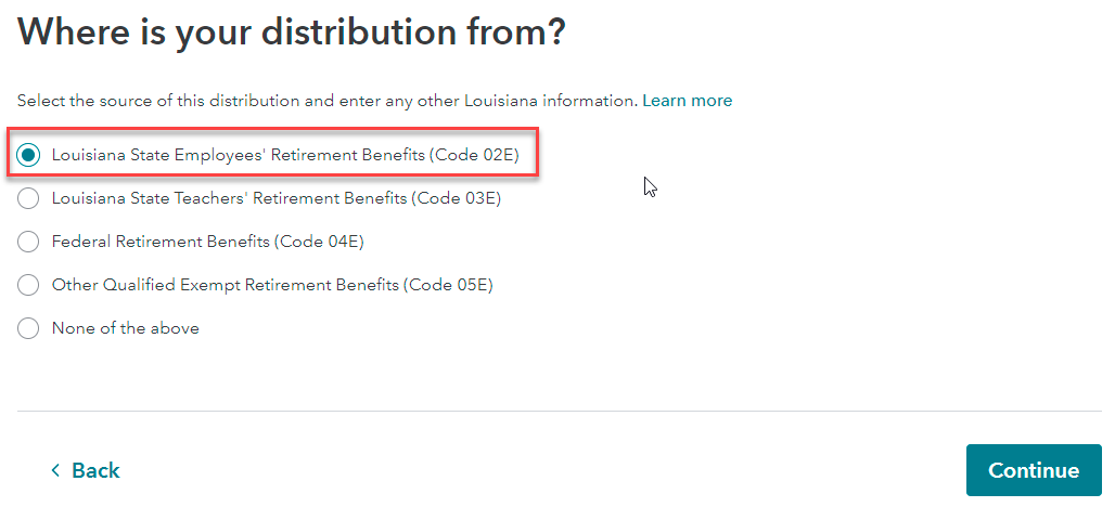 TurboTax will exempt Louisiana State Employees' Retirement Benefits if you selected that option when you entered Form 1099-R.