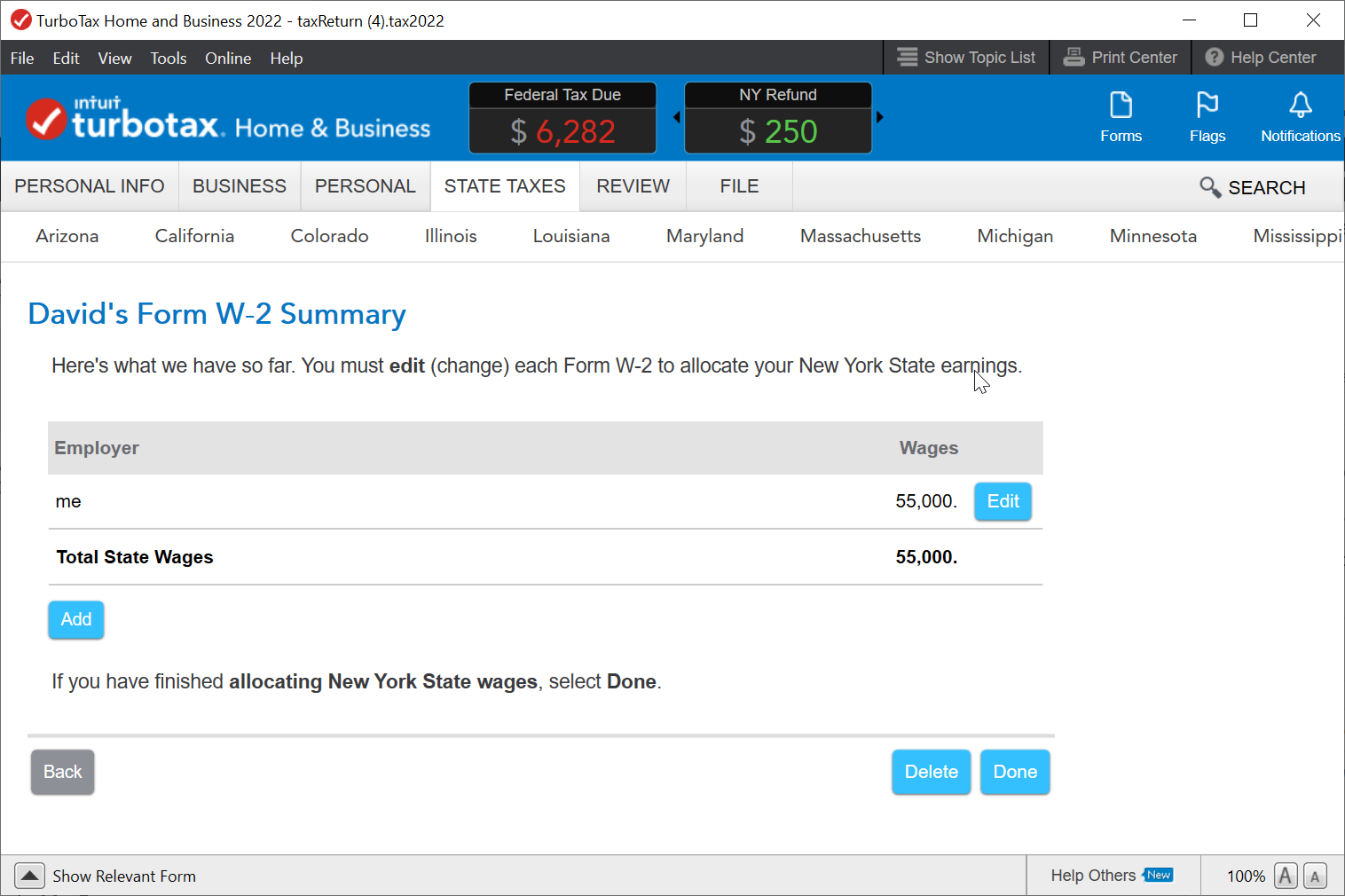 @DaveF1006 That's what I did at first, but the NY refund amount is much less than what it was withheld. In your example, is $250 also the amount that was withheld?
