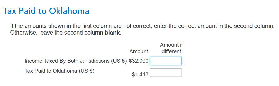The number listed on the MI tax return screen "Tax Paid to Oklahoma: Income Taxed By Both Jurisdictions" also appears on MI tax return "Credit for Income Tax Paid to Another State" worksheet, line 1 (Income earned in another state or locality subject to income tax). I cannot find that number on OK return. I am guessing Turbo Tax uses a number on OK return and then subtracts something to get the final number listed on the screen. Any idea what the formula is? Could it possibly be pulling some numbers from the 2020 return?