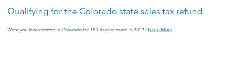 In TurboTax Online, access the credit at the screen Qualifying for the Colorado state sales tax refund.
