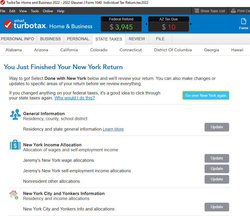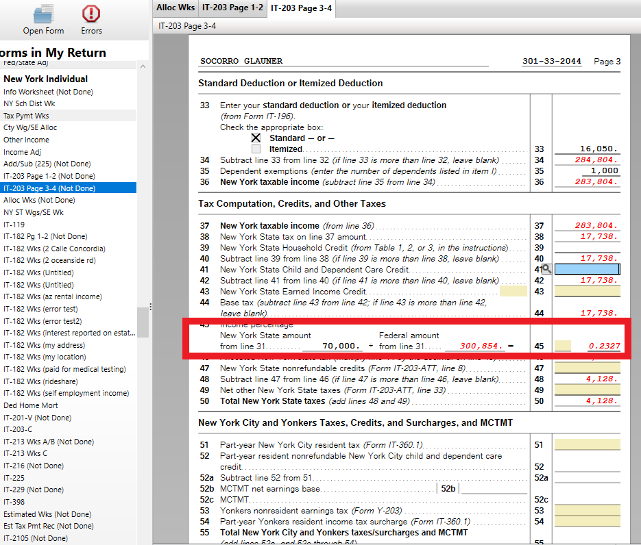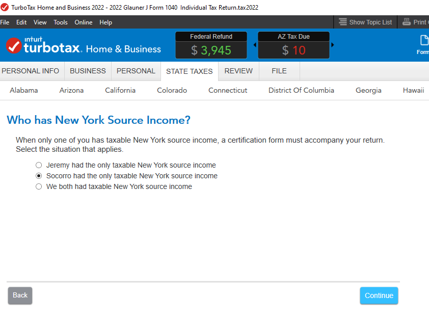 My spouse works in NY and I work in CT. We both live in CT. It seems like we keep getting taxed in NY on all our household income as NY even though I complete the allocation with 100% Spouse in NY and 100% my income in CT. I completed the allocation section. IM not sure why its taxing on the total income as if it's in NY.