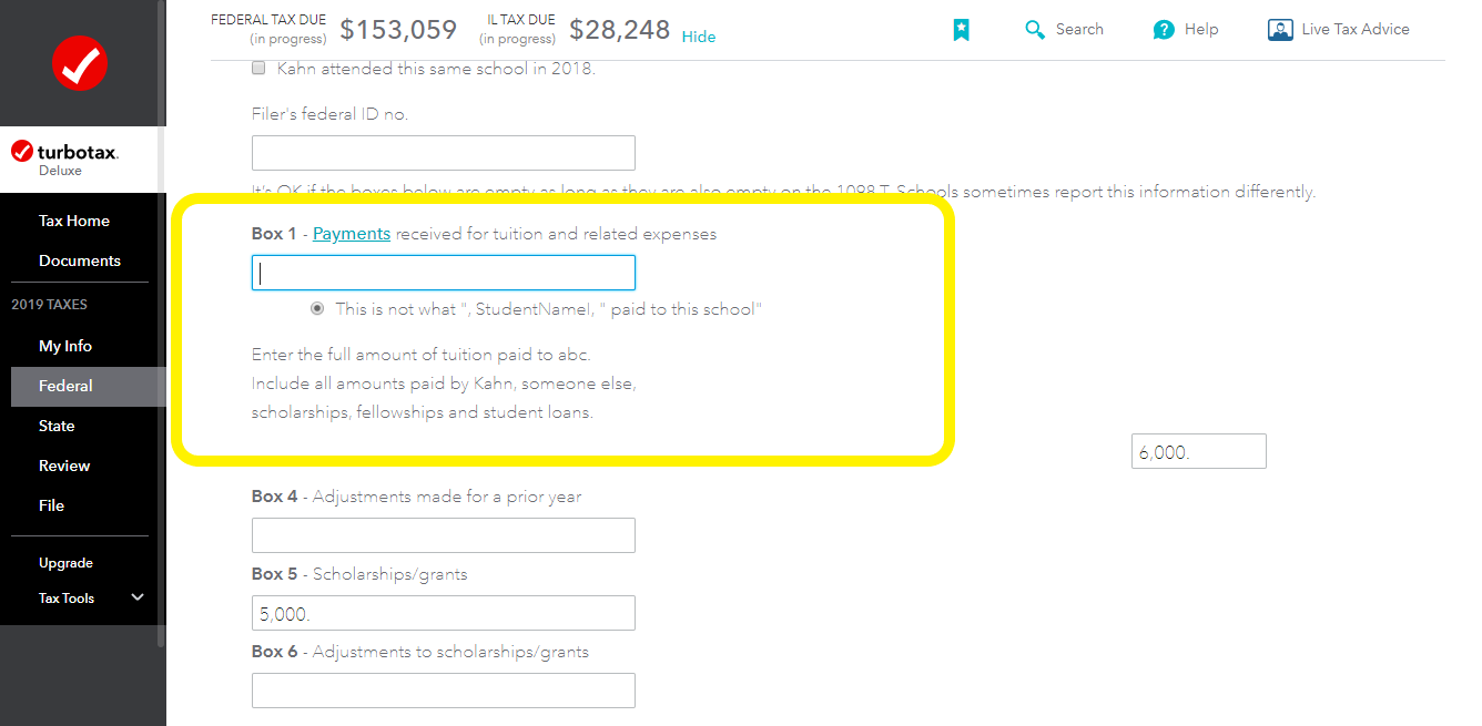 since box 1 is less than box 2 it looks like its showing up as added income from scholarship. why? we didn't get that money. the school was sent by his employer. Turbo tax is picking it up as income.