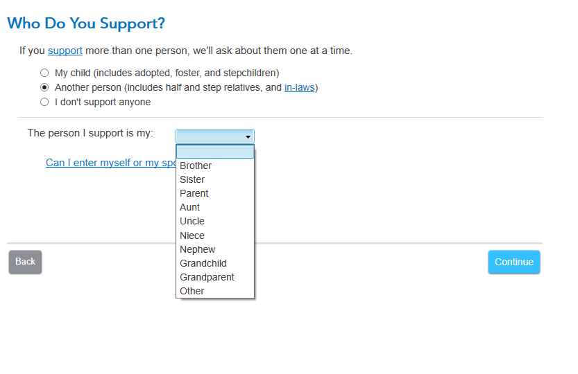 As you walk through the personal info section and enter their info, you will select that they are another person and then a drop down will appear where you will select Grand Child.