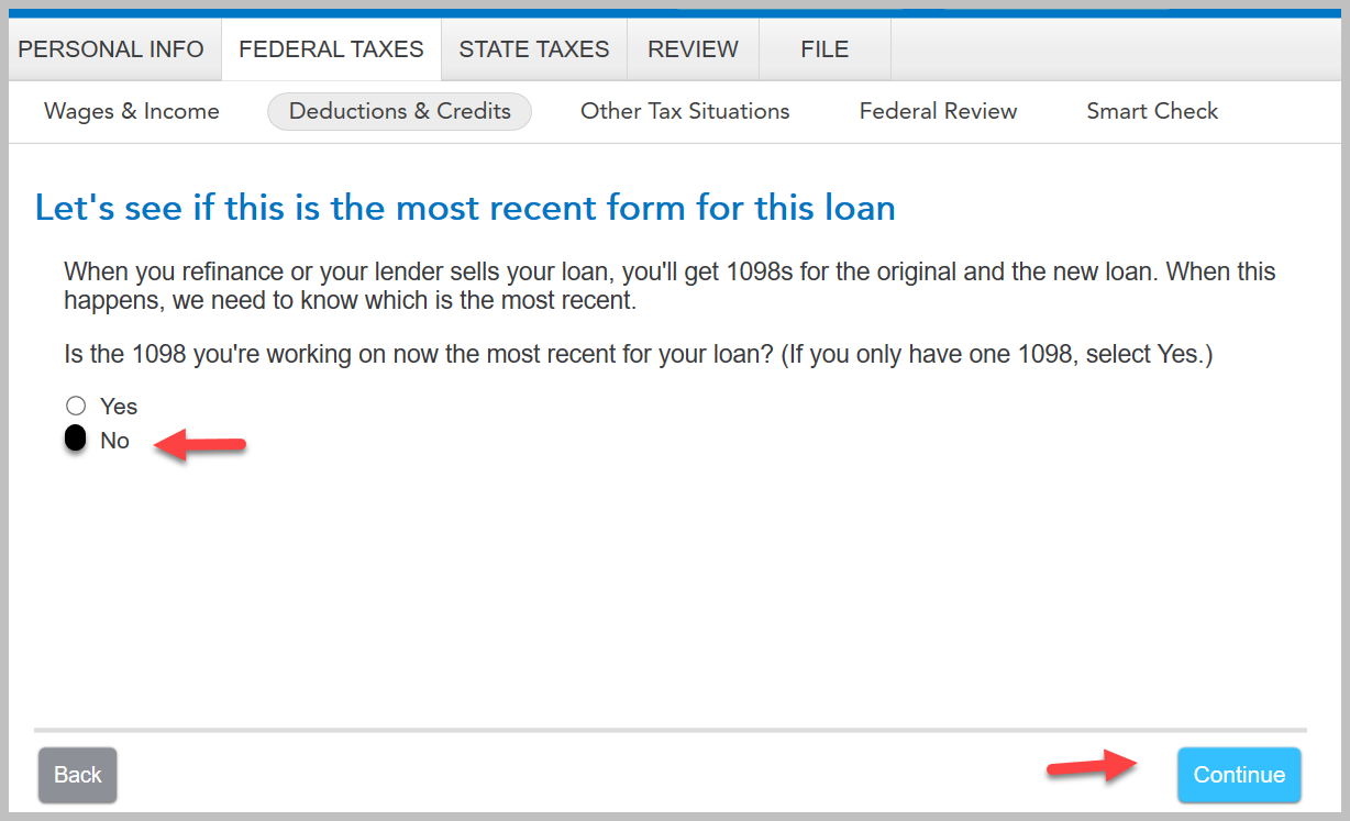 Enter the 1098 for the new loan second: