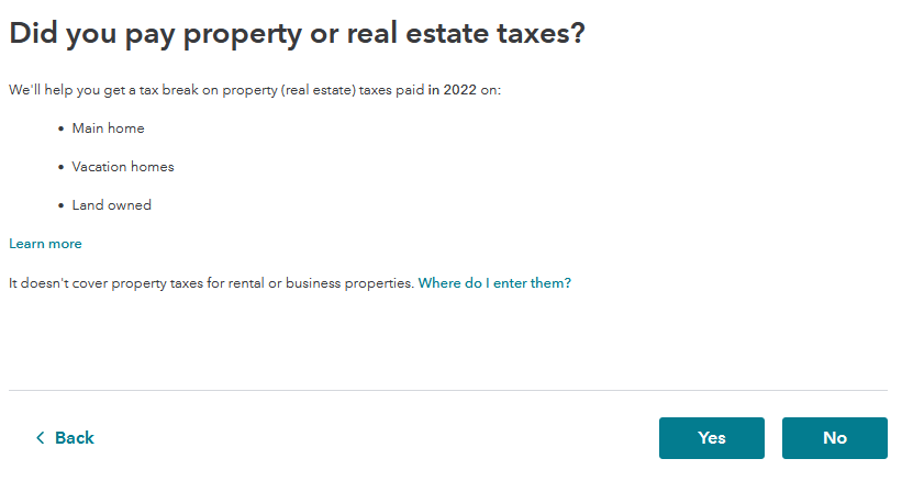 IF not that, you have to...note that there are two areas where real-estate taxes are potentially entered.