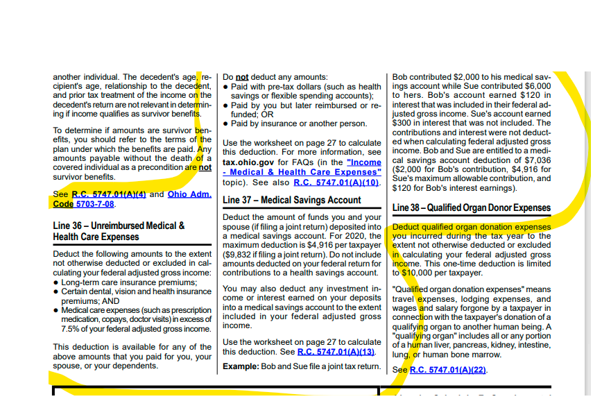 Medical care expenses are generally deductible for Ohio income tax purposes to the extent they exceed 7.5% of the taxpayer’s federal adjusted gross income. This is the same requirement as for Federal. Enter them in Federal > Deductions and Credits > Medical so that they transfer over to state.