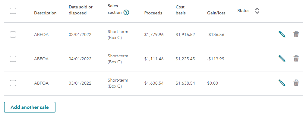 Do you need to enter additional entries?  Click Add another sale at the screen Review your sales to enter additional entries.