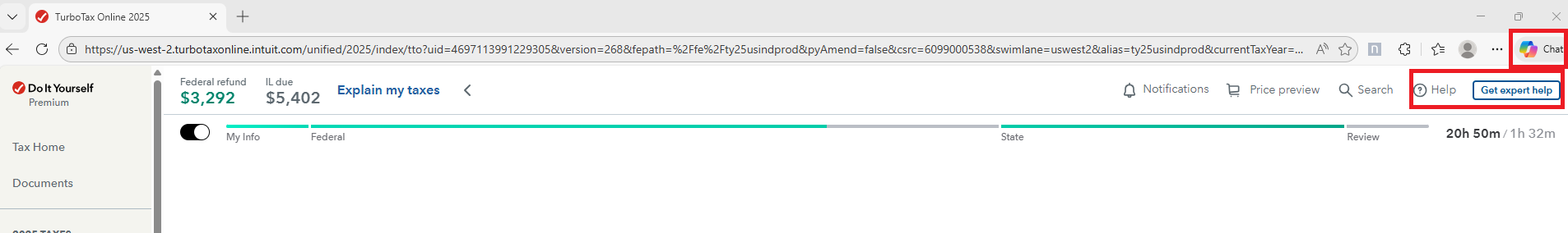 If you run into forms or issues you feel you need help with as you're preparing your return, you have several options; a 'Help' link, a 'Chat' link and and 'Expert Help' link you can access.