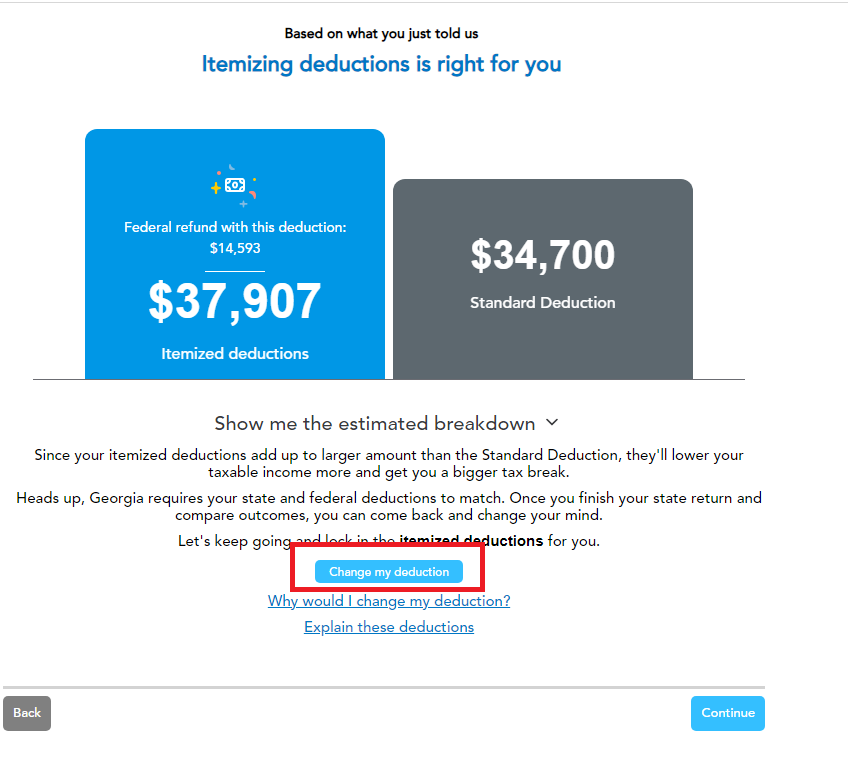 Where would I change the return to itemized deduction? When I went to filing status it just let me choose MFS. I didn't see the option in the deductions section either.