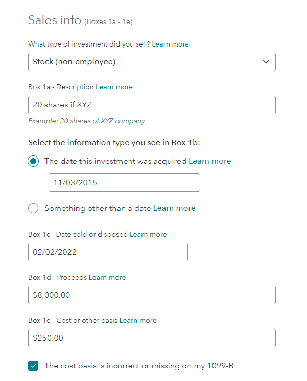 And yes, make sure you check the box The cost basis is incorrect or missing on my 1099-B.