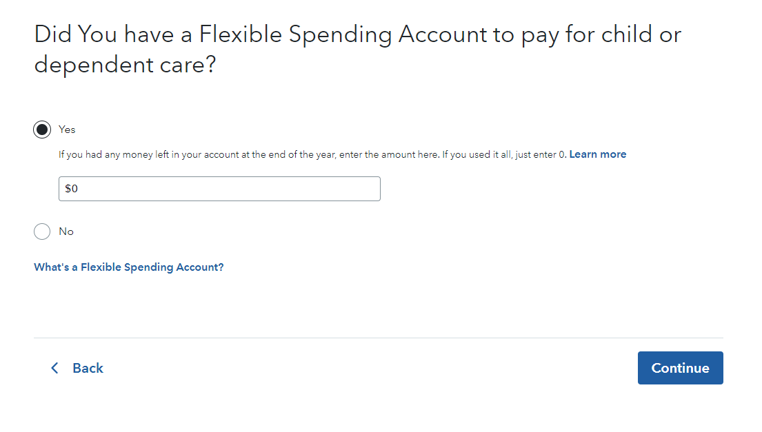 The Turbo Tax software is telling me I'm eligible for $228 in the dependent care credit when I also have a dependent care FSA. We contributed $1140 to the dependent care FSA and got reimbursed for the exact full amount. The $1140 is reported in box 10 of my W-2 and the dependent care credit menus in the software tells me to report money paid from an FSA and the provider name and address. I've done this in years past so I'm familiar with it. Why is the software calculating $228 in the credit? We're not eligible for the credit when we do the FSA and only make expenditures (reimbursements) up to the FSA contribution amount, right?