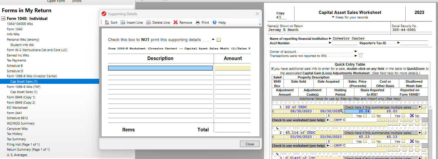 In prior versions of the Premier TurboTax CD Desktop download for Windows, right clicking on the Proceeds and Cost cells would bring up the "Add Supporting Details" screen. That is no longer available in the Premier version for 2023 taxes.