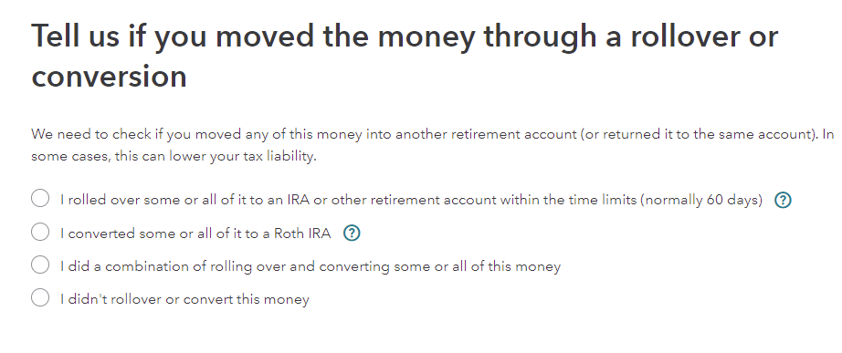 You can't just change the code. Code G is only for a trustee to trustee transfer. Enter the code 7 and indicate that you rolled the money over later in the interview screen.