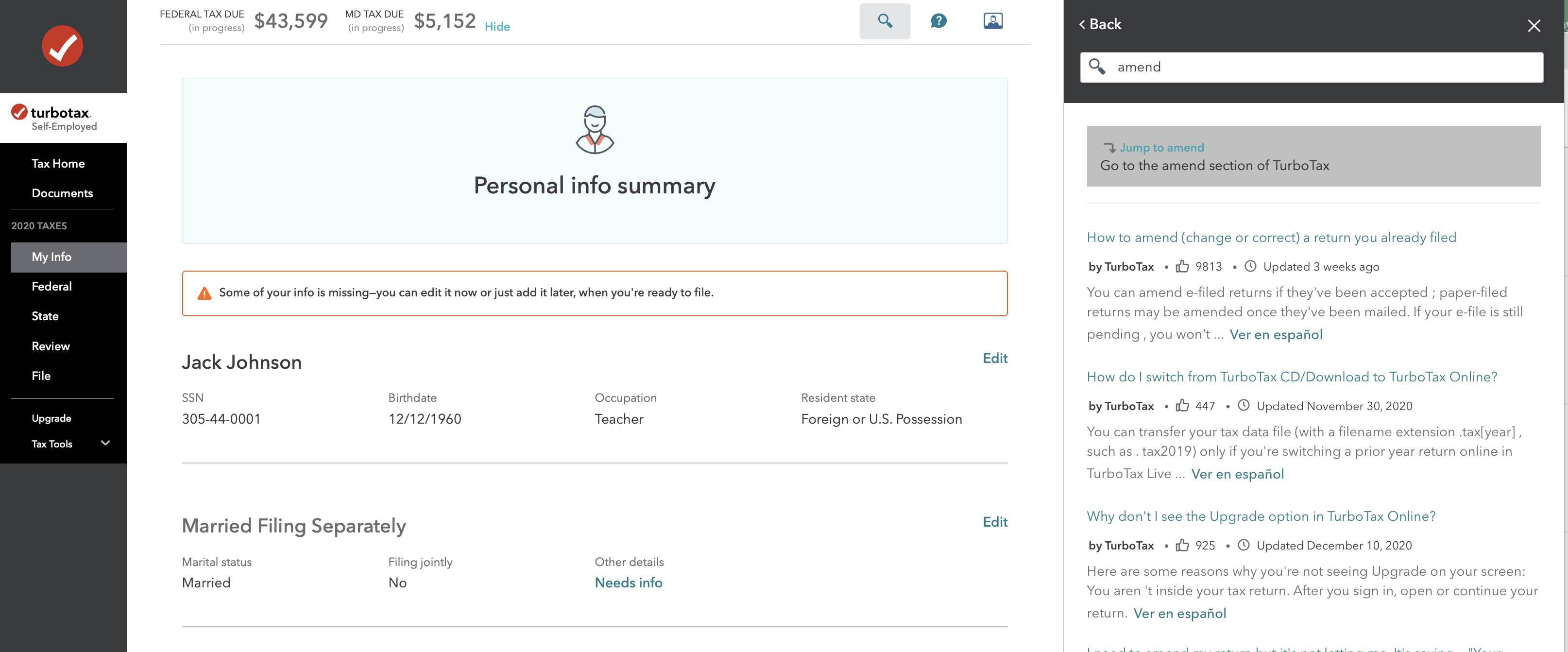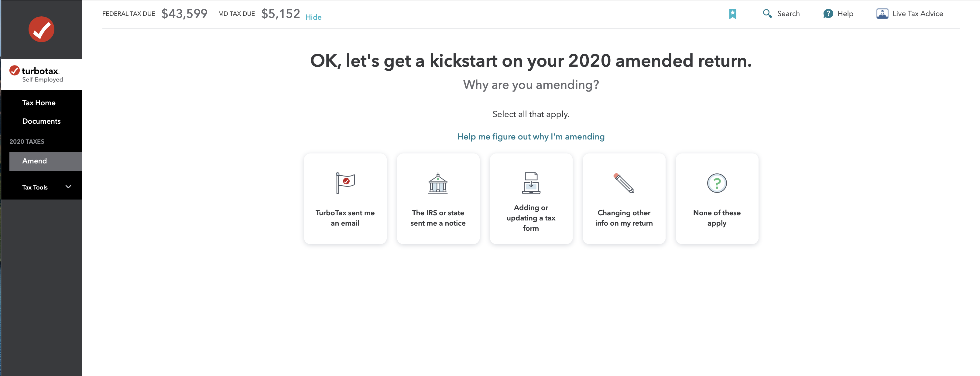 I can't seem to find where to do an amendment on Turbo Tax. I saw that option before I started my taxes when I originally opened Turbo Tax, but do not see that option now.