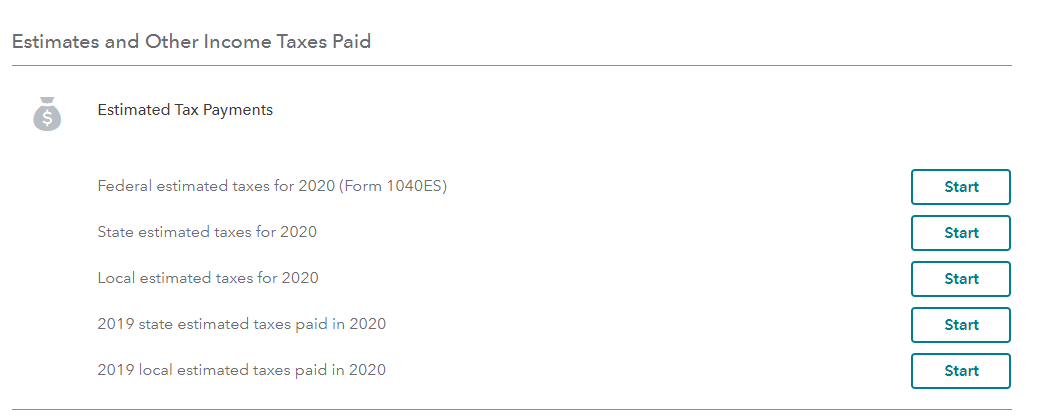 • Scroll down to Estimates and Other Taxes Paid