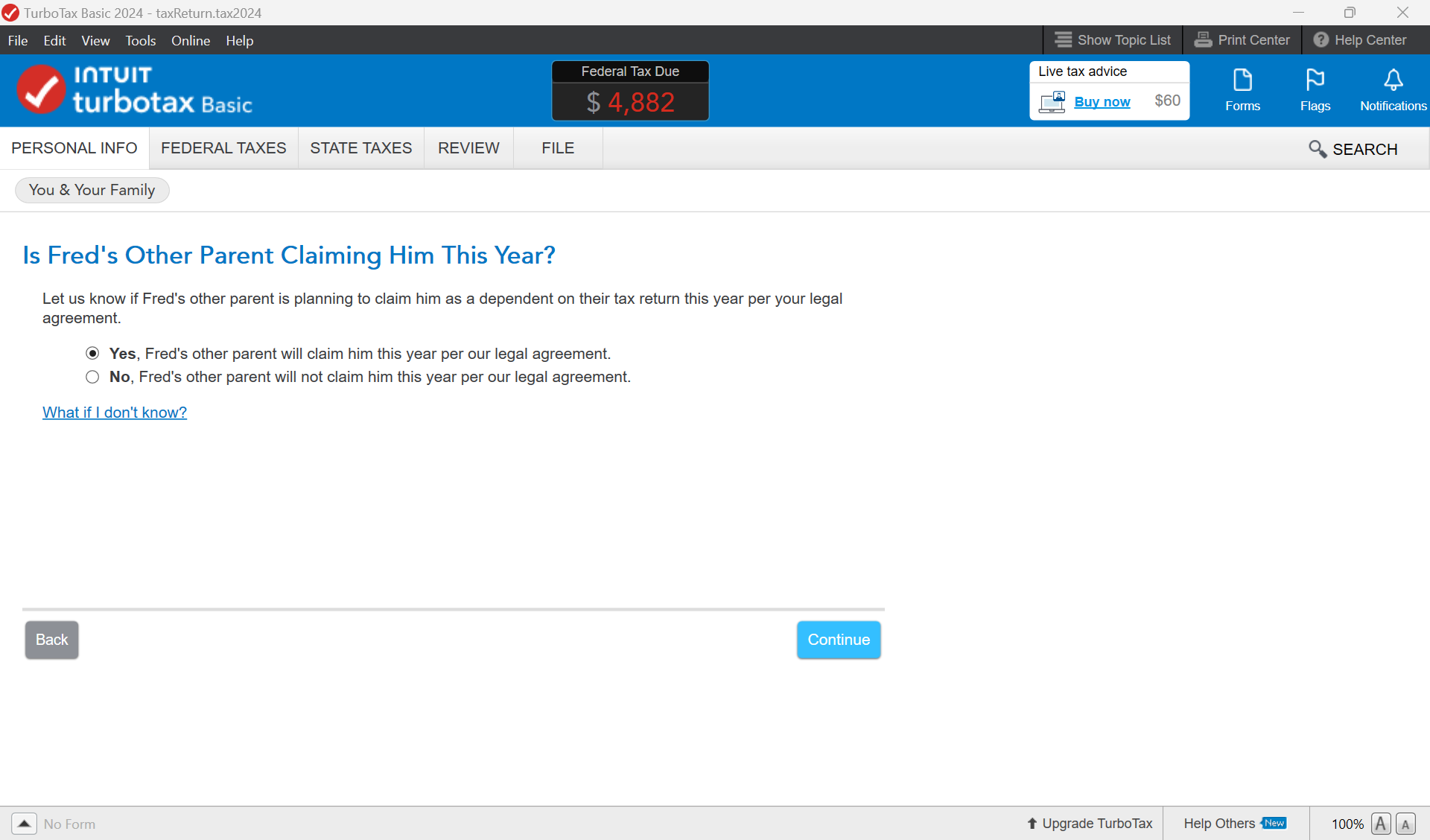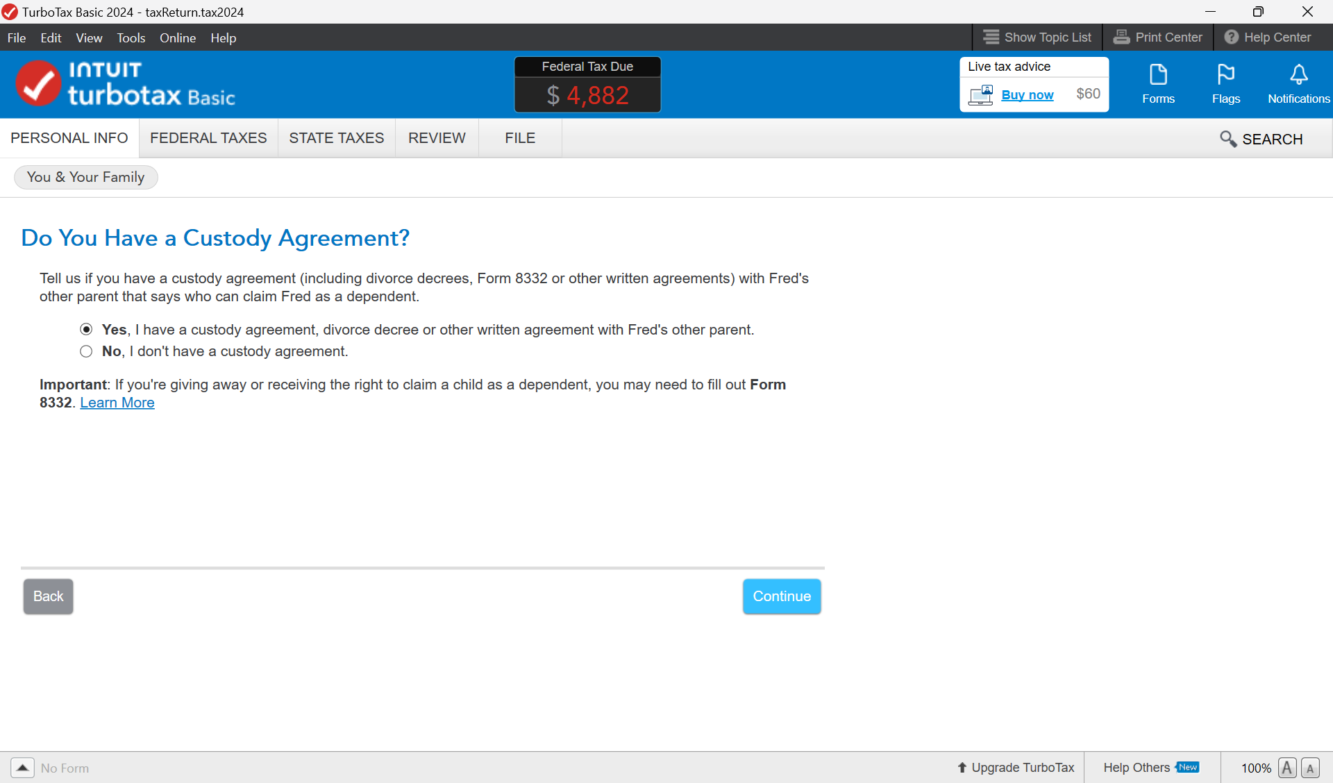 What this does is alerts the IRS that you have a child, there is a custody agreement, which could be a signed 8332, and that either you can claim them this year or not. Here are the screenshots that illustrate this.