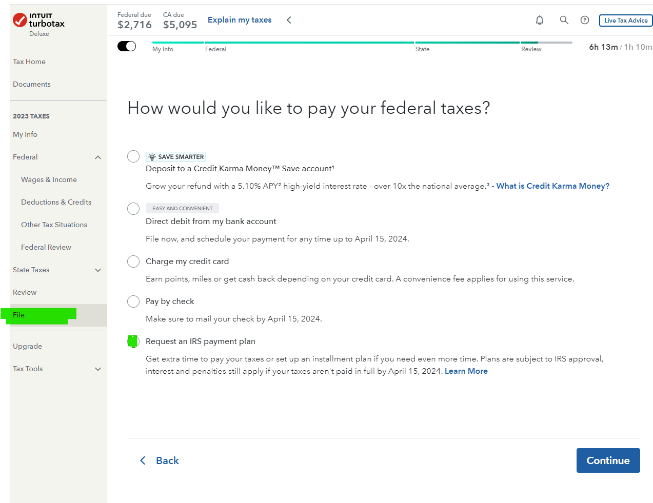 6. Answer the questions to request a payment plan that will be attached to your tax return.
