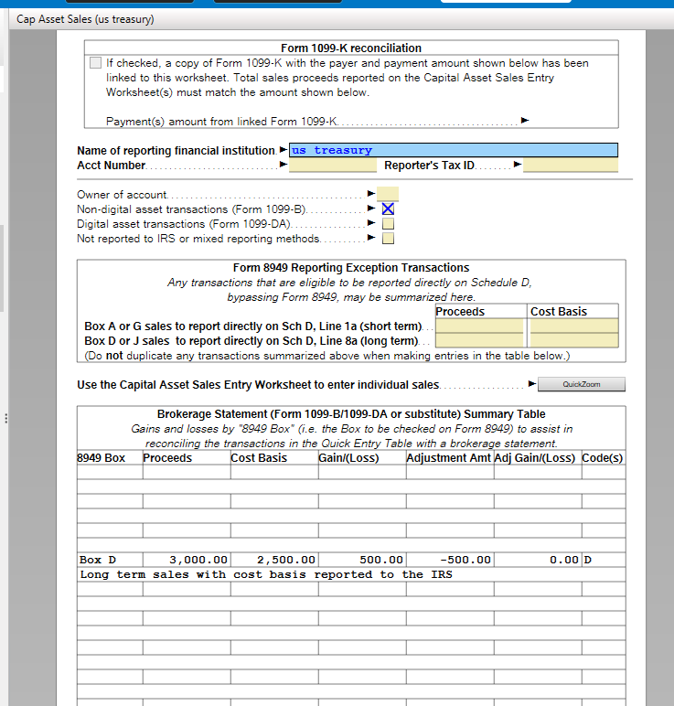 Yes, when you enter a 1099-B with an amount in Box 1f for Accrued Market Discount, check your Capital Asset Sales Worksheet. It should show the transaction with an Adjustment amount for the amount of the Accrued Market Discount with a Code D.