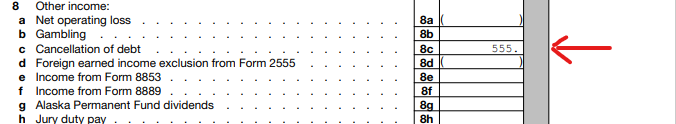 I assume that you are referring to IRS form 1099-C cancellation of debt that appears on Schedule 1 Additional Income and Adjustments to Income line 8c.
