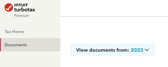 To view the previous year's tax return in TurboTax Online, click on Documents in the upper left hand corner of the screen.