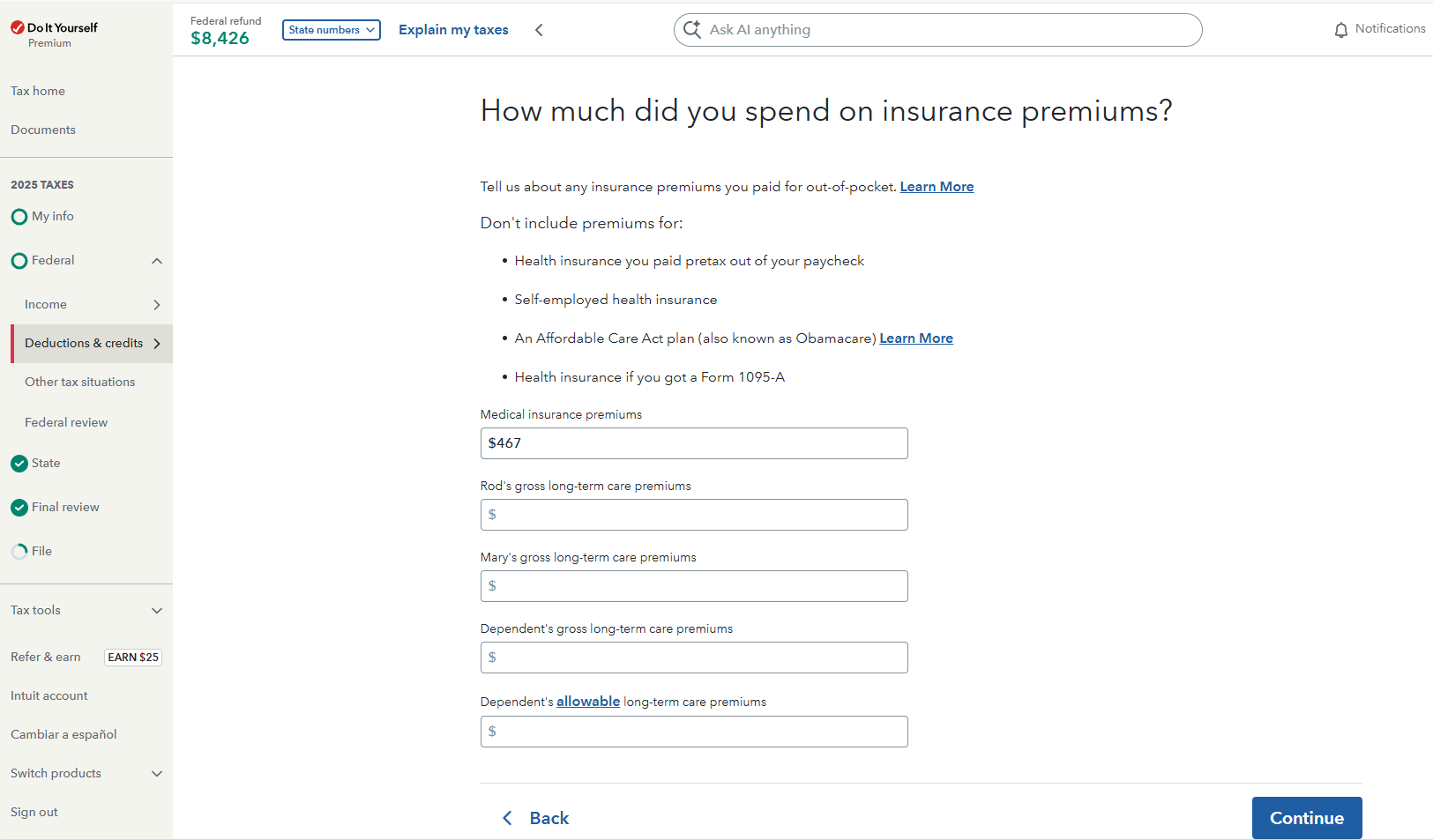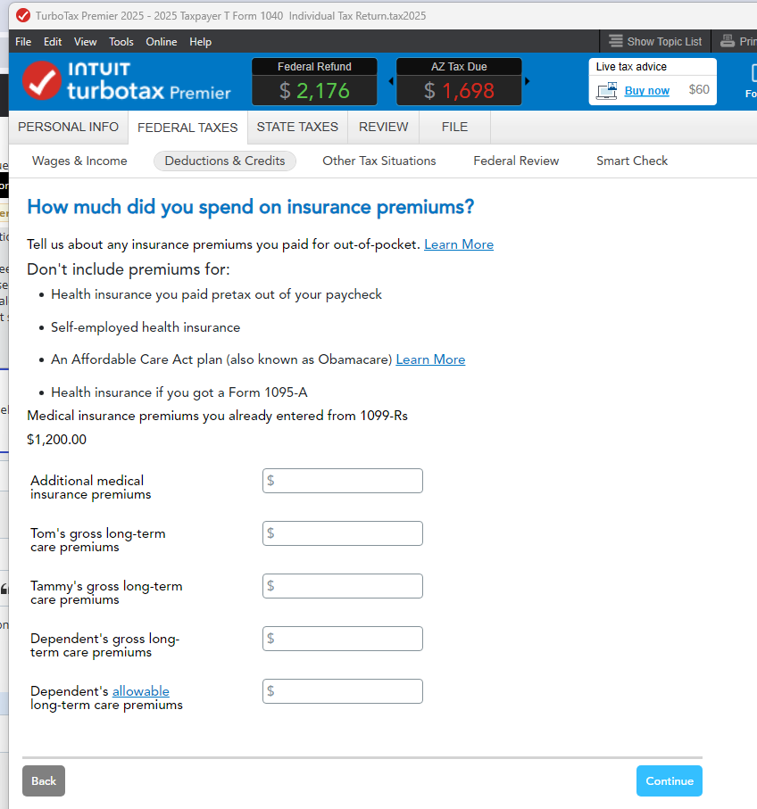 Thank you. How about the LTC premium I paid for myself, is that deductible?