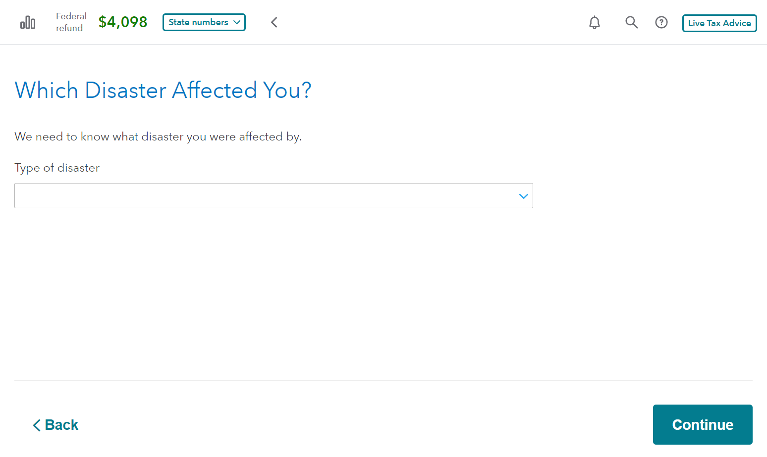 On the screen “Which Disaster Affected You?” choose the Type of disaster in the dropdown. That will add the correct FEMA disaster code.