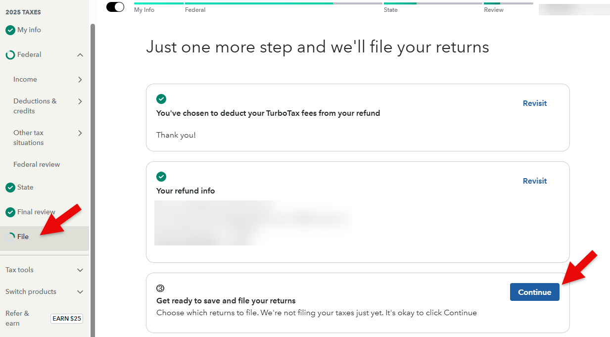Open your return in TurboTax and click Tax Home. Select File and navigate to filing the tax return.