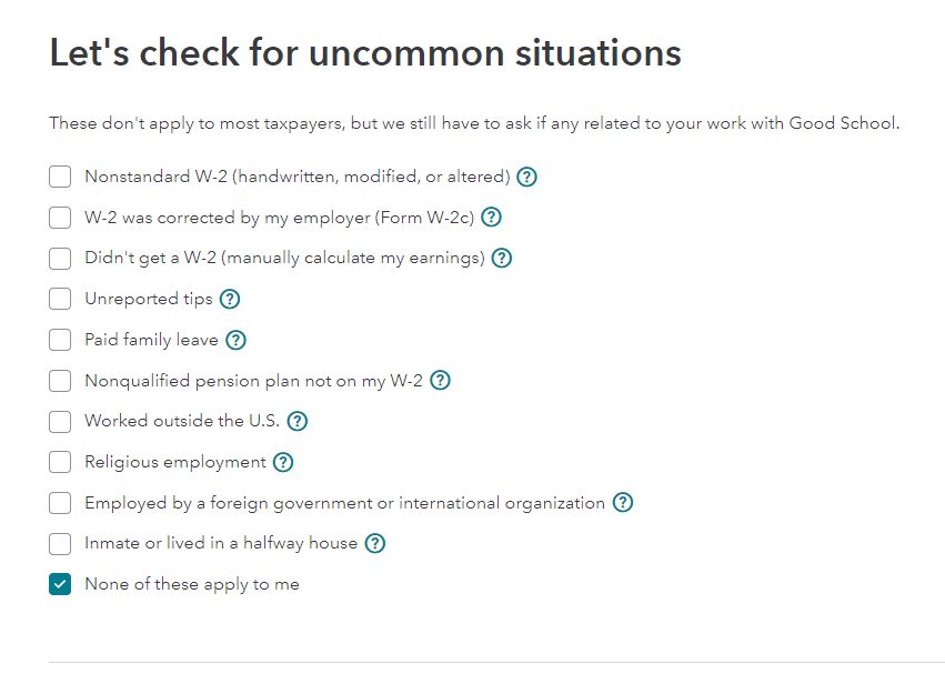 After you enter the W-2, you will find a screen with uncommon situations. Merely click on "inmate or halfway house". [Edited 2/2/22|3:7PM EST]