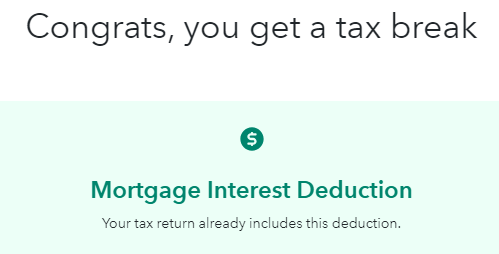 Did you receive the message Congrats, you get a tax break - Mortgage Interest Deduction - Your tax return already includes this deduction after entering your home mortgage interest?