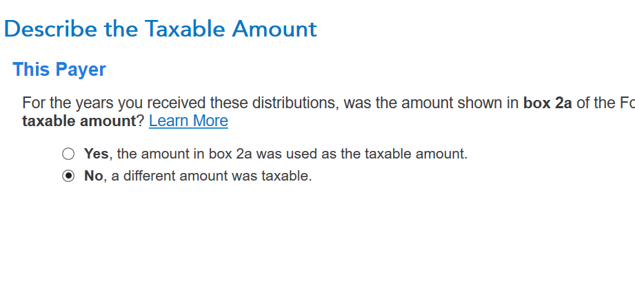 Box 2b taxable not determined is checked