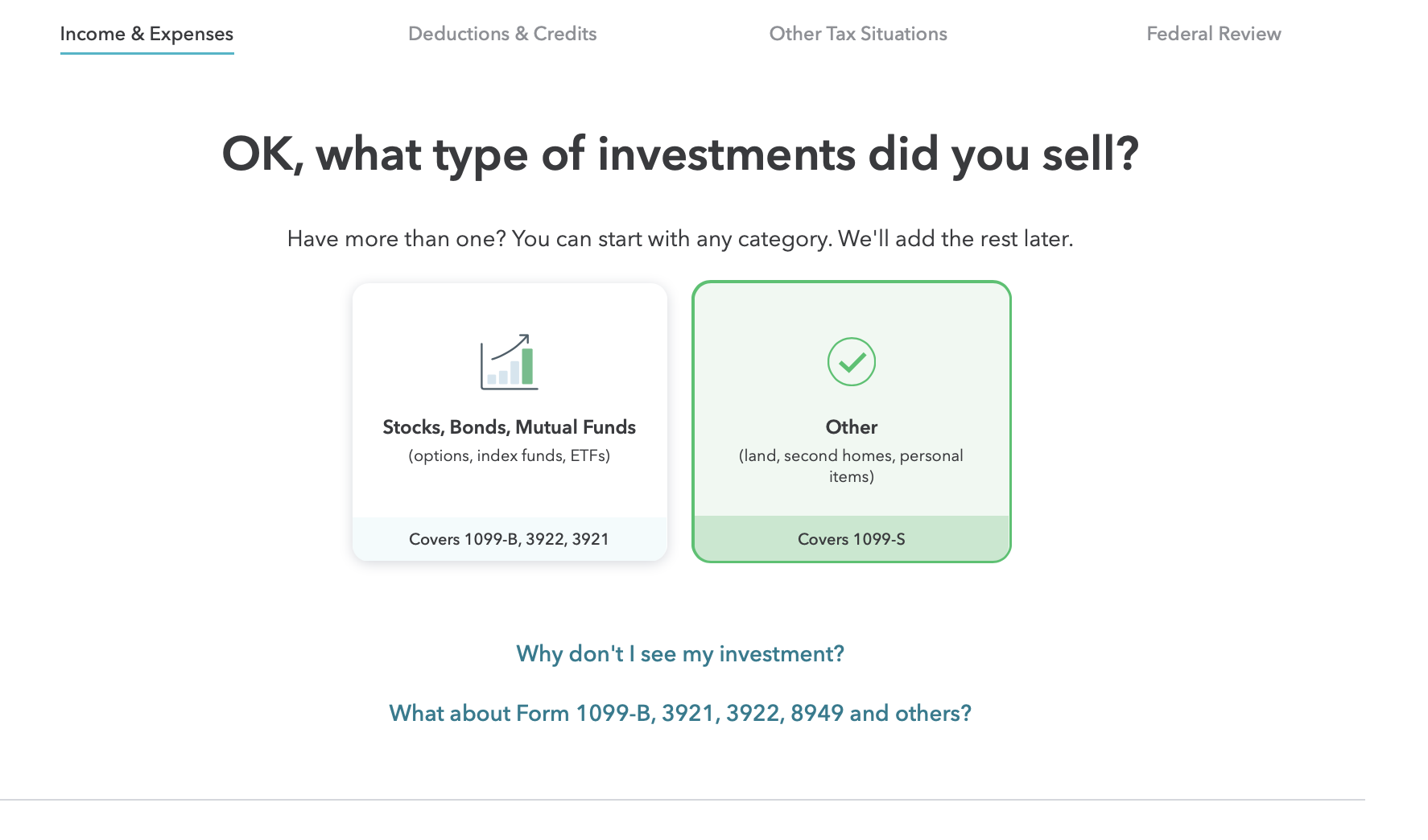 See Where do I enter the sale of a second home, an inherited home, or land on my 2019 taxes? for instructions on how to access this interview in either online or desktop versions of the program.