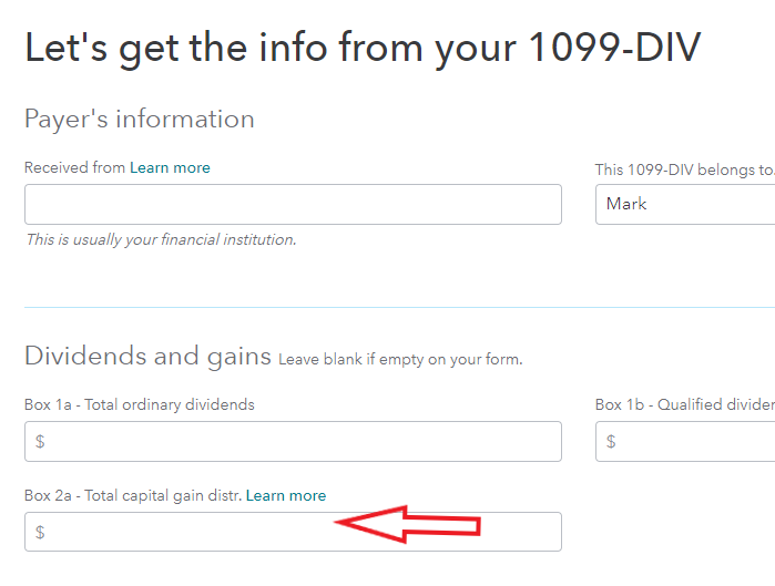 If you are using the online version of TurboTax, please see the steps below to enter Box 2a, 3 and 7 of Form 1099-DIV: